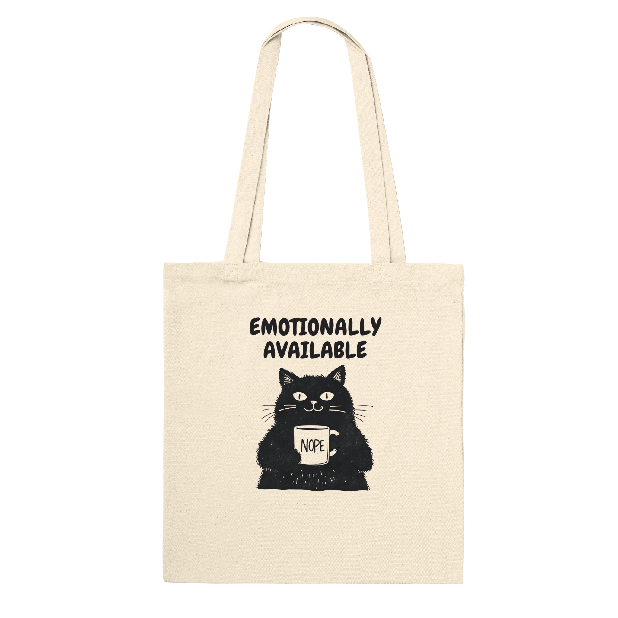 Meet the tote that speaks fluent sarcasm. The “Emotionally Available” Bernie the Cat tote isn’t just a bag — it’s a mood, a warning sign, and a conversation starter all rolled into one. Designed by Sydney artist Akanksha Kaushik, this cotton tote lets you parade your unapologetic wit without saying a word.