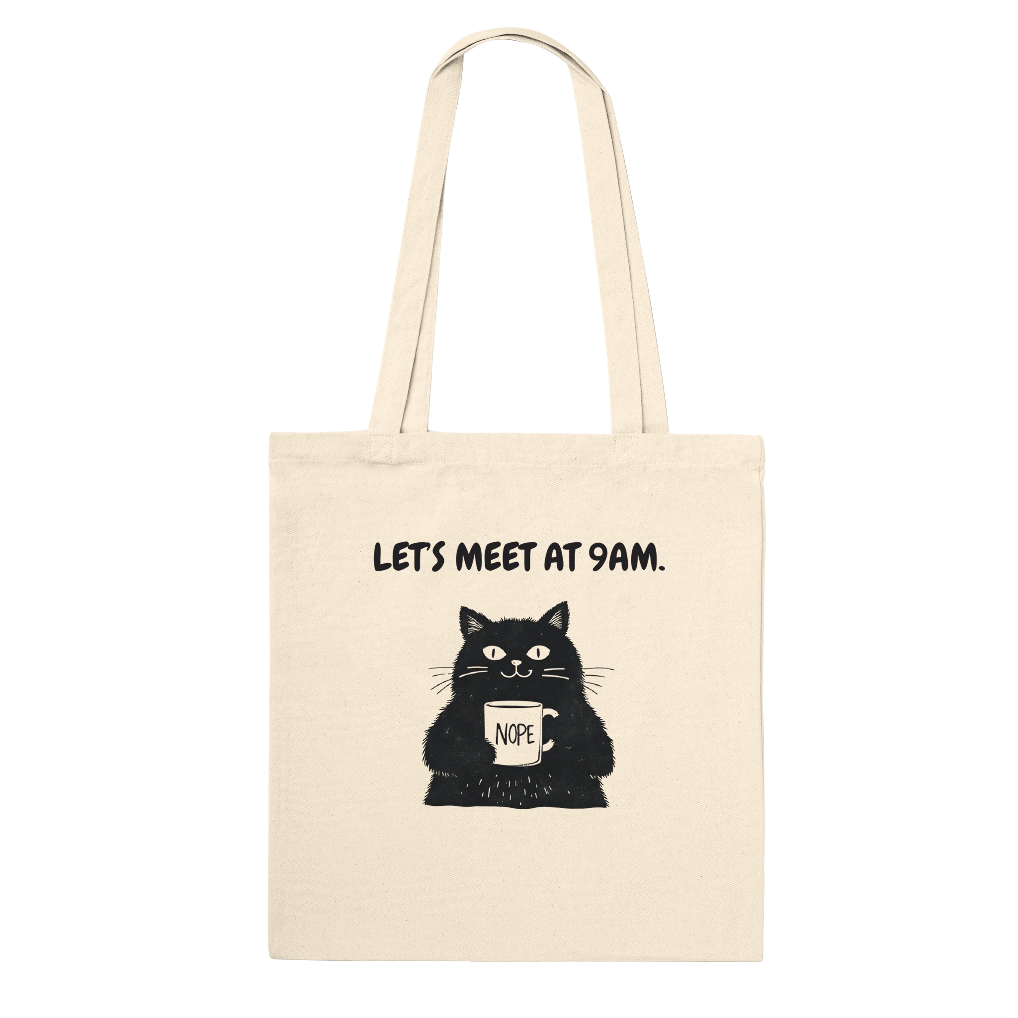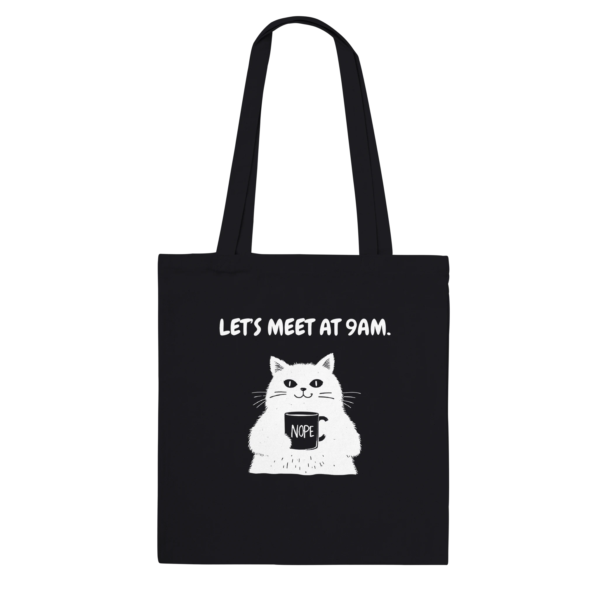 Let’s Meet at 9AM – Sarcastic Cat Tote Bag