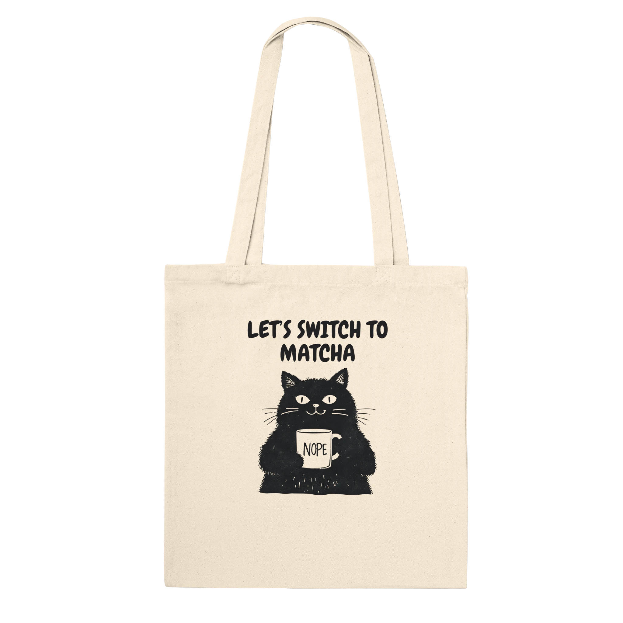 Let’s Switch to Matcha – Quirky Cat Tote Bag