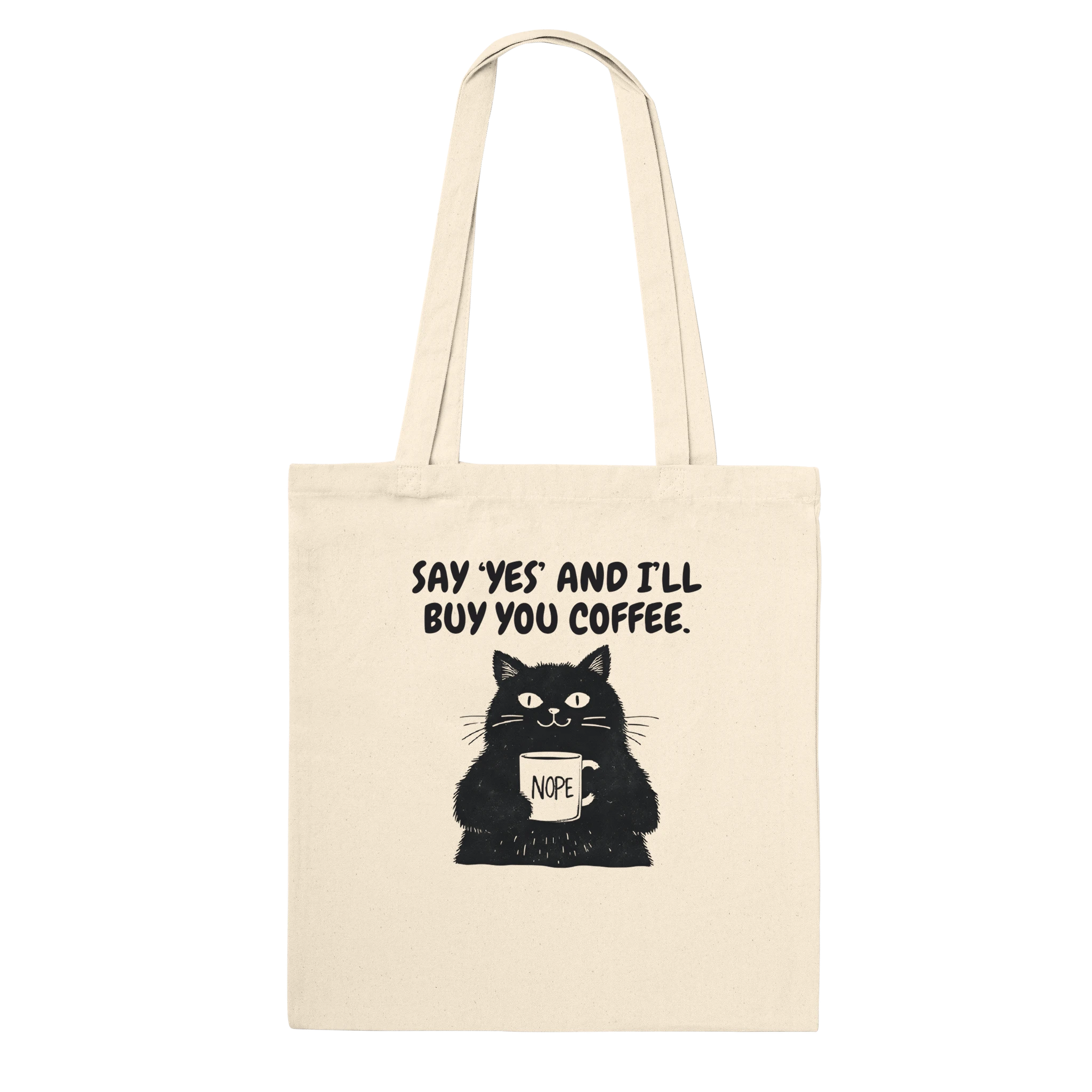 Say Yes & I’ll Buy You Coffee – Quirky Cat Tote Bag
